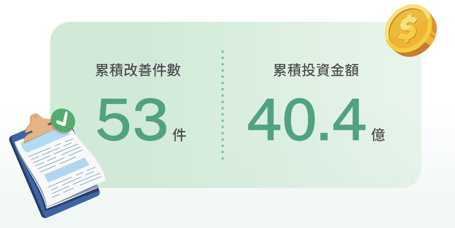 organic compounds, VOCs ) 的減量改善作業。台塑石化累積至 2024 年改善件數共 53 件,投資金額約 40.4 億元。