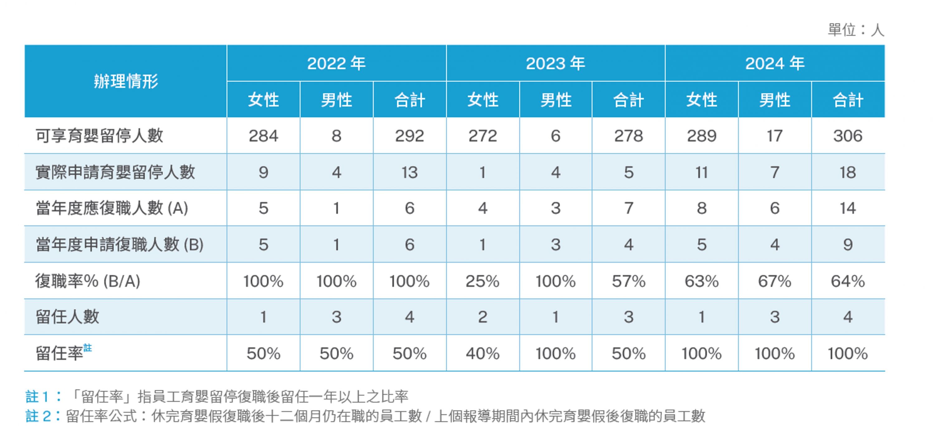 為了落實幸福職場的概念,在廠區設哺乳室,打造友善的辦公環境提供同仁於上班時間之哺( 集) 乳需要,並依法提供撫育假,符合條件之同仁得依撫育需要調整工時。