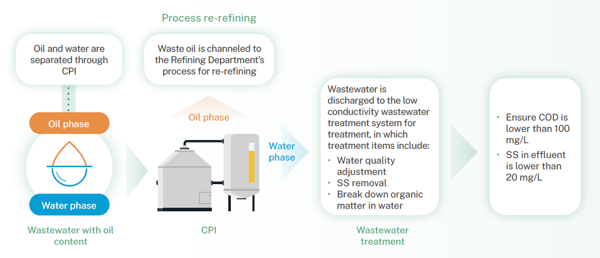 Water resources required for product manufacturing, including ultra-pure industrial water and steam, are mainly used for equipment heating, heat exchange, heat recovery, equipment cooling, power generation facilities, etc., so that raw materials can be used to produce high-quality products based on related manufacturing processes. The Company's wastewater is treated by its own wastewater treatment plant.