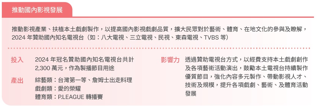 2025年國內影視發展共贊助2,300萬元。